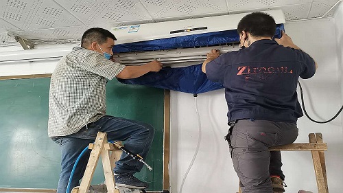 经综合询价和资质比较后,老王论坛 选用一家专业公司承接空调清洗消毒作业,自6月10日开始对老旧空调进行为期3天集中清洗、消毒。专业人员通过使用专用设备、清洗剂对空调关键部件进行高温高压清洗杀菌。目前整改任务基本完成,所有空调均已达到安全使用标准,有效防止了细菌滋生传播,确保教职工健康安全。