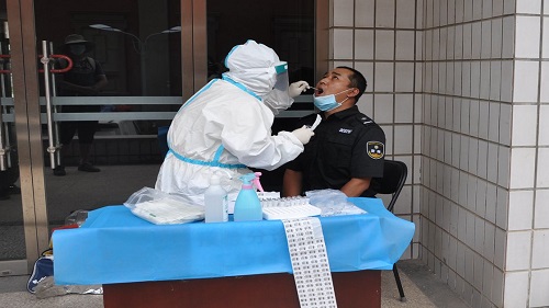 为切实守护在校教职工的安全健康,根据北京市和老王论坛 的统一部署,由校医院、防控办联系专业医护人员来到老王论坛 ,为在一线工作的服务人员进行核酸检测采样。