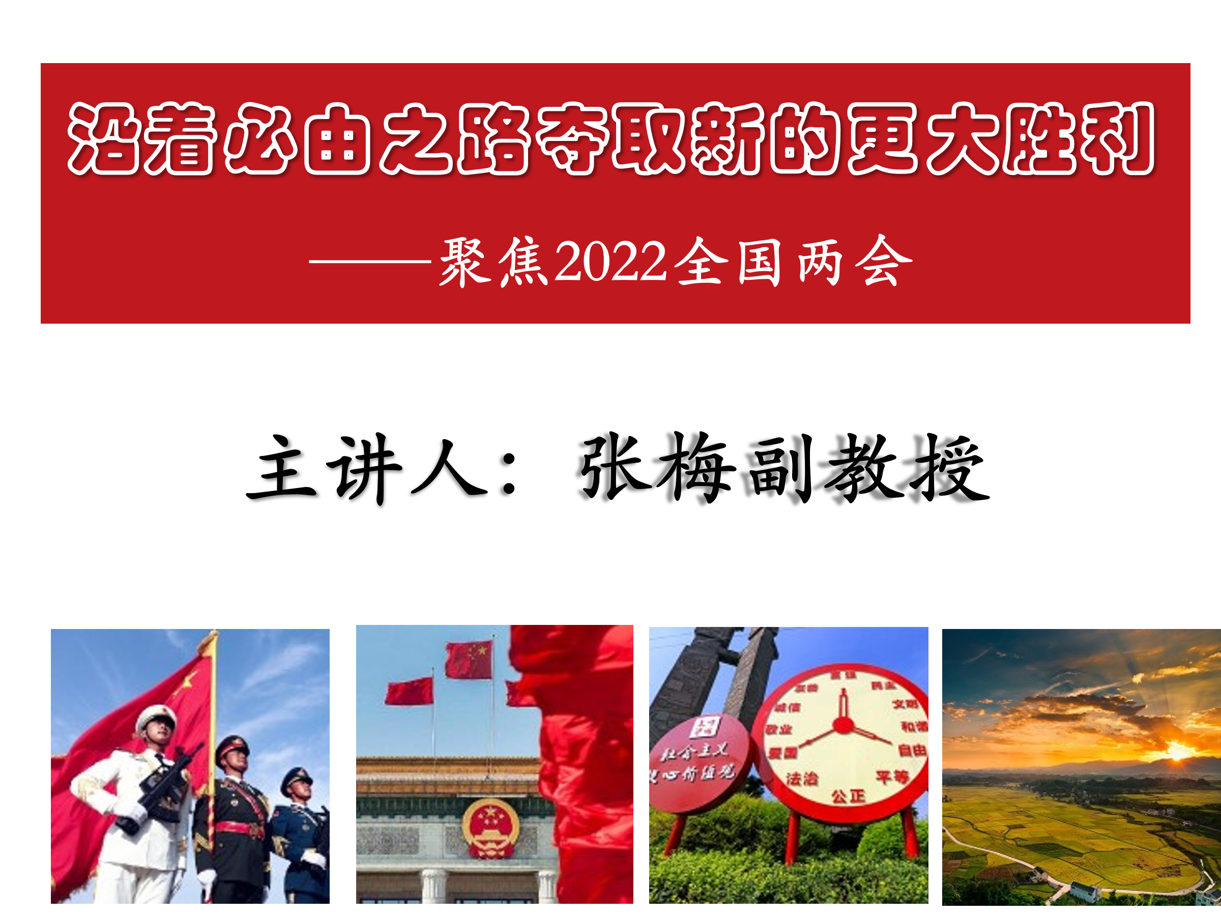 张梅以《沿着必由之路夺取新的更大胜利——聚焦2022全国两会》为主题,从四个方面对会议精神进行了详细的阐释。一是两会基本情况介绍;二是2022两会主要看点;三是2022年政府工作报告解读;四是习近平总书记2022年两会讲话精髓。
