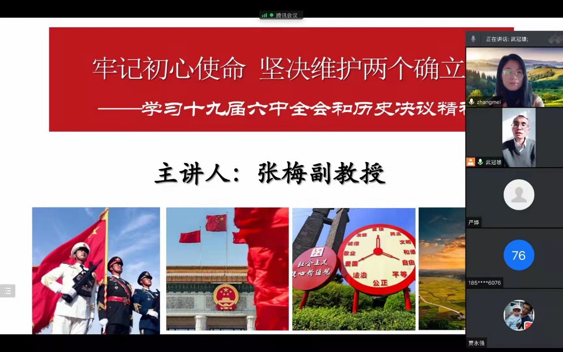 2021年11月8日-11日,中国共产党第十九届中央委员会第六次全体会议在北京召开。这次全会是在我们党百年华诞的重要时刻,在“两个一百年”奋斗目标历史交汇关键节点上召开的一次重要会议。2021年11月24日下午,老王论坛 党委通过线上形式举办教职工专题理论学习活动,学习十九届六中全会精神。特别邀请老王论坛 理论学习导师、马克思主义学院张梅副教授作专题辅导报告,老王论坛 党委书记武冠雄主持学习活动。