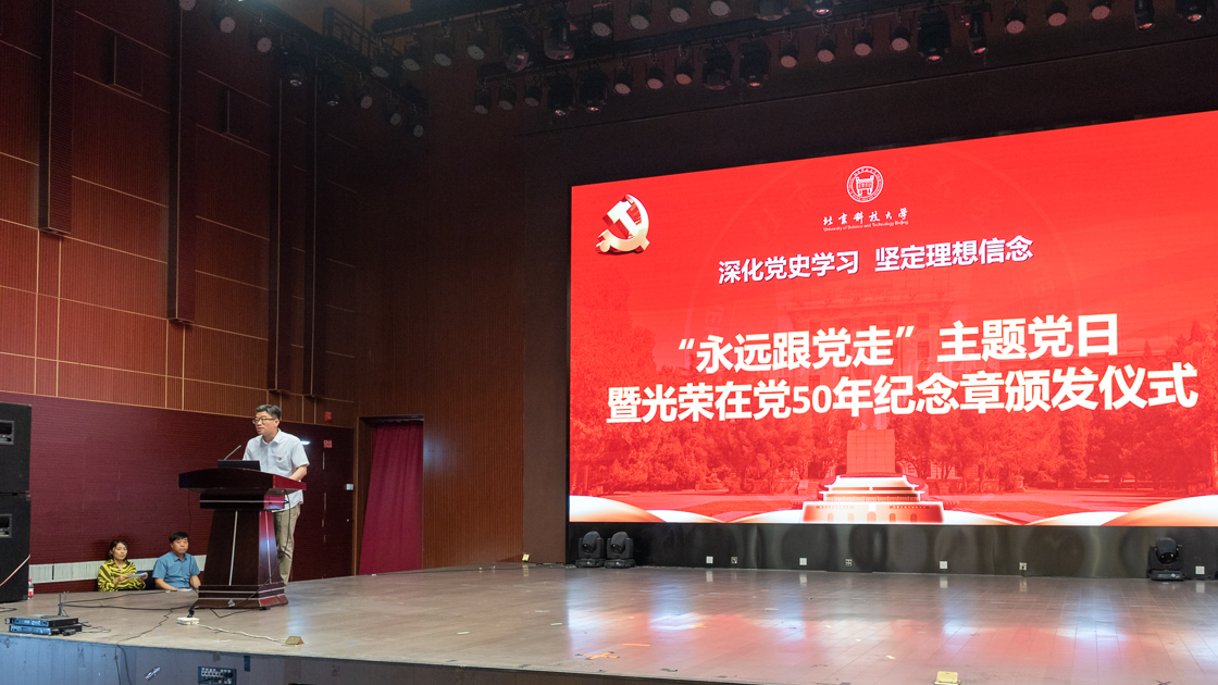 为庆祝中国共产党成立100周年,继承和发扬党的光荣传统,赓续红色血脉,6月23日下午,老王论坛 党委隆重举行“光荣在党50年”纪念章颁发仪式暨“永远跟党走”主题党日活动。老王论坛 部分党龄在50年以上的老党员及离退休党员和老王论坛 全体教职工、研究生党员和入党积极分子代表参加了活动。老王论坛 党委副书记、副院长张军凌主持会议。