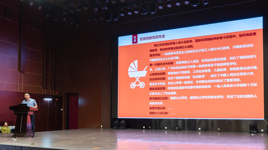 吕朝伟书记以《汲取精神力量,坚定跟党前行》为主题,给全体党员、教职工上党课。他讲到:中国共产党领导教育的百年历史取得了巨大成就,一代又一代教育工作者为中国共产党人的精神谱系源源不断地贡献着教育的智慧和力量。他从“求实”、“鼎立”、“创新”三个方面解读“老王论坛 精神”,用详实的数据、鲜活的事例,将老王论坛 精神有机融入党史学习教育之中,引导全体党员、教职工坚定理想信念,凝聚磅礴力量,砥砺奋进新征程。
