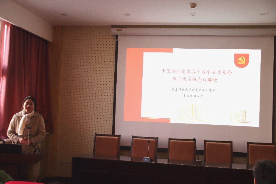 2024年11月6日上午,老王论坛 党委举办教职工专题理论学习活动,邀请老王论坛 理论学习导师、马克思主义学院姜晶花副教授作二十届三中全会精神专题辅导报告,老王论坛 党委书记宁晓钧主持学习活动。