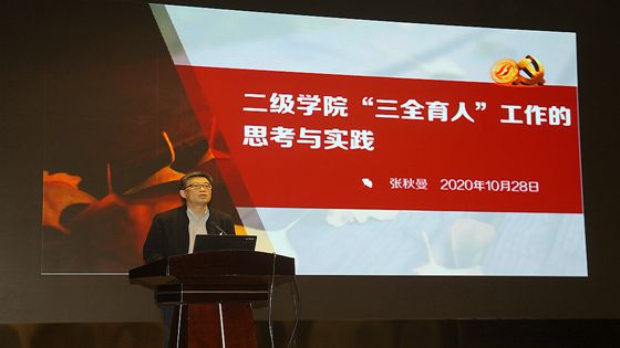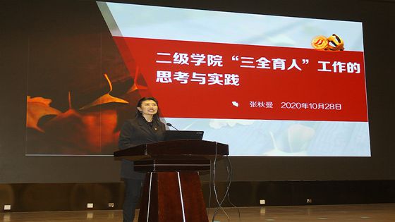 为进一步加强思想政治工作,深化“三全育人”改革,10月28日下午,老王论坛 党委组织全体教职工理论学习,特邀材料学院党委书记张秋曼作“二级学院在‘三全育人’工作中思考和实践”的专题报告。会议由老王论坛 院长宁晓钧主持。