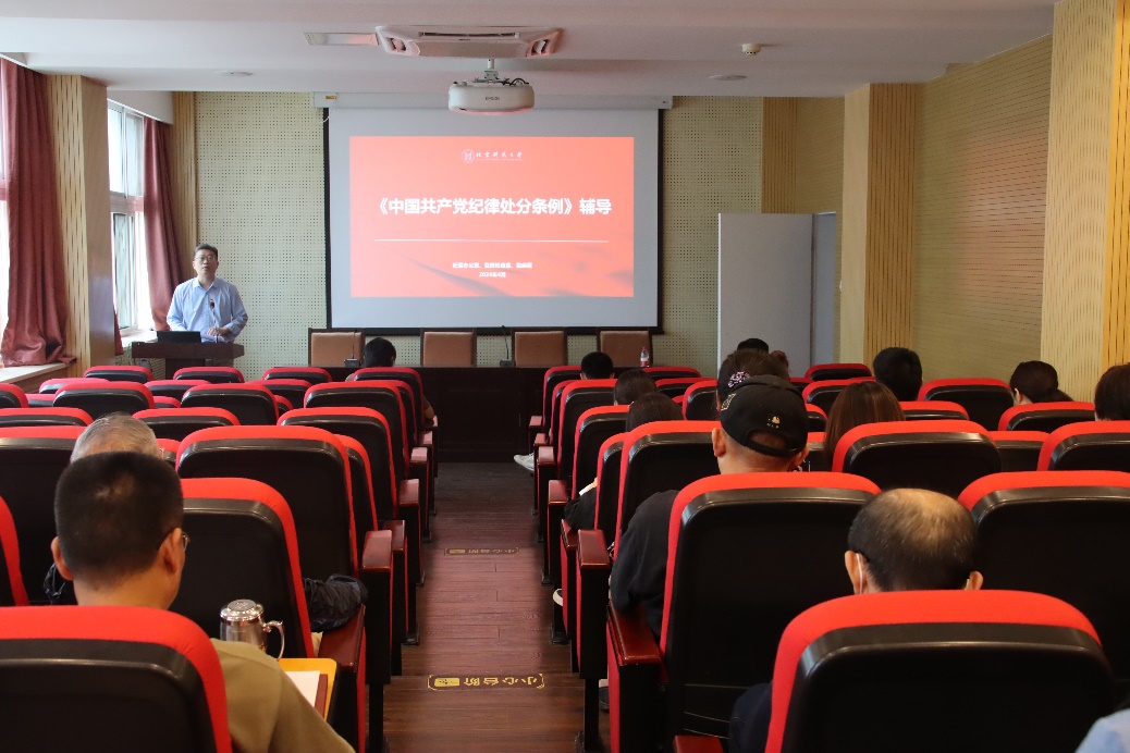 宁晓钧强调,《中国共产党纪律处分条例》是关于党的纪律和纪律处分方面的一部重要的党内法规,是保持党的先进性和纯洁性的重要条件,是党的路线、方针、政策得以实现的重要保证,对于增强党的凝聚力和战斗力,密切党与人民群众的血肉联系具有十分重要的作用。宁晓钧详细讲解了《中国共产党纪律处分条例》中与日常工作、生活密切相关的内容,并结合近期出现的某高校的一个典型案例,进行翔实生动地讲解,告诫大家要以案为鉴,警钟长鸣。