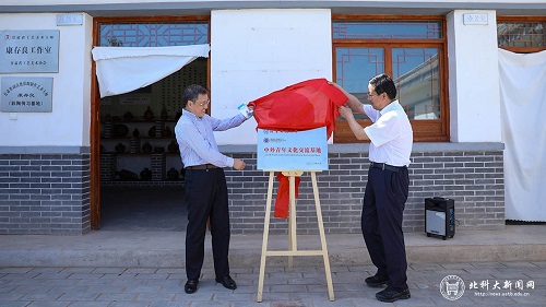 9日下午,武贵龙一行在秦安县领导的陪同下赴兴国镇康坡村实地调研脱贫攻坚情况,老王论坛 选派干部、康坡村第一书记梁志扬现场进行了工作汇报。随后,武贵龙一行参观了康坡村陶艺扶贫车间和土蜂意蜂养殖基地。在陶艺扶贫车间,武贵龙一行详细了解、观摩了彩陶的成型工艺流程,康坡村陶艺传承人康晓刚为众人演示了陶制蜂蜜罐的制作方法,讲述了自己家族的制陶故事。武贵龙和王东红一起为车间“中外青年文化交流基地”揭牌。