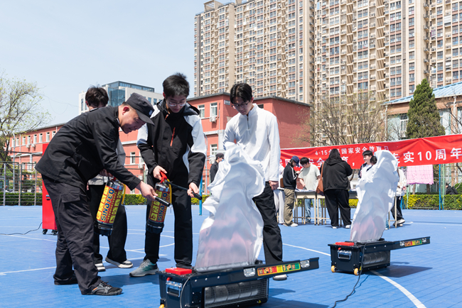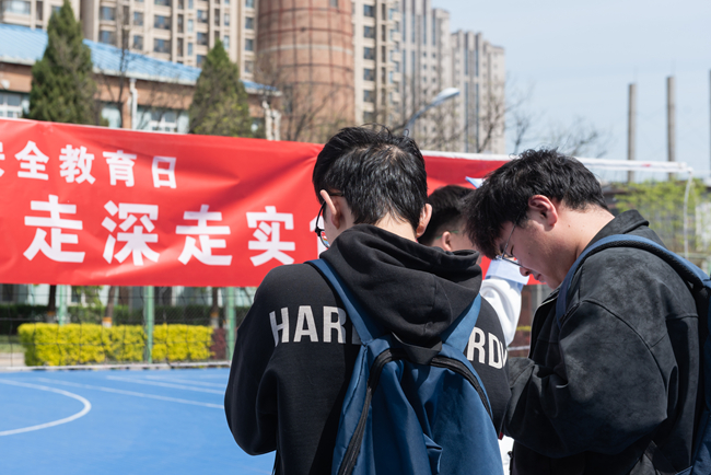 在国家安全知识竞赛答题区,同学们积极踊跃参与,纷纷拿出手机进行扫码答题,在巩固国家安全知识的同时也让同学们深刻认识到维护国家安全与每个人息息相关。